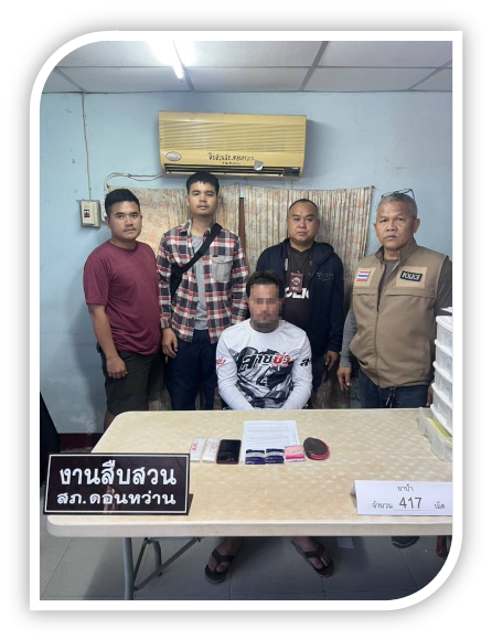 23 ธันวาคม 2567 ภายใต้การอำนวยการสั่งการของ พ.ต.ท.กตตน์ ภูดวงจิตร สวญ.สภ.ดอนหว่าน ให้ พ.ต.ท.หาญพล หาญโยธี สว.สส.ฯ ร.ต.อ.วุฒิพันธ์ จันทะฤทธิ์ รอง สว.สส.ฯพร้อมชุดสืบสวน สภ.ดอนหว่าน ได้จับกุม ผู้ต้องหา 1 ราย ข้อหาจำหน่ายซึ่งยาเสพติดให้โทษประเภท 1(ยาบ้า)โดยมีไว้เพื่อจำหน่ายโดยไม่ได้รับอนุญาตอันเป็นการกระทำเพื่อการค้าและก่อให้เกิดการแพร่กระจายในกลุ่มประชาชนและเสพยาเสพติดให้โทษประเภท 1(ยาบ้า) โดยฝ่าฝืนต่อกฎหมาย พร้อมด้วยของกลางยาบ้า 417 เม็ด โทรศัพท์มือถือ 1 เครื่อง รถ จยย. 1 คัน และนำผู้ต้องหาพร้อมของกลางส่งพนักงานสอบสวนเพื่อดำเนินการตามกฎหมายต่อไป