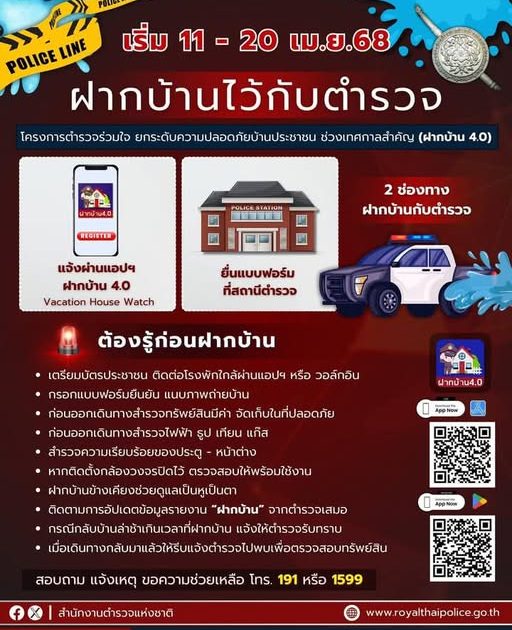 2. วอล์กอินไปสถานีตำรวจในพื้นที่บ้าน กรอกแบบฟอร์มฝากบ้านกับตำรวจ