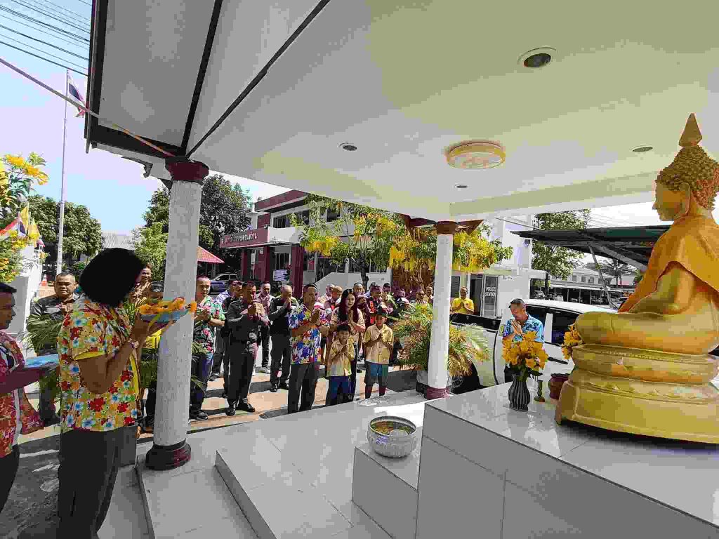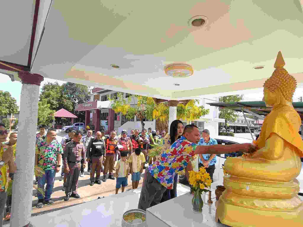 พ.ต.ท.กตตน์ ภูดวงจิตร สวญ.ฯ พ.ต.ท.สมบัติ ยางคำ สวป.ฯ พ.ต.ท.หาญพล หาญโยธี สวย.สส.ฯ พ.ต.ต.สุวัฒน์ พงพันนา สวย.(สอบสวน)ฯ พร้อมข้าราชการตำรวจ สภ.ดอนหว่าน ร่วมกิจกรรมสรงน้ำพระพุทธรูปประจำ สภ. ตามประเพณี เพื่อเป็นสิริมงคลแก่ข้าราชการและประชาชนที่มารับบริการ