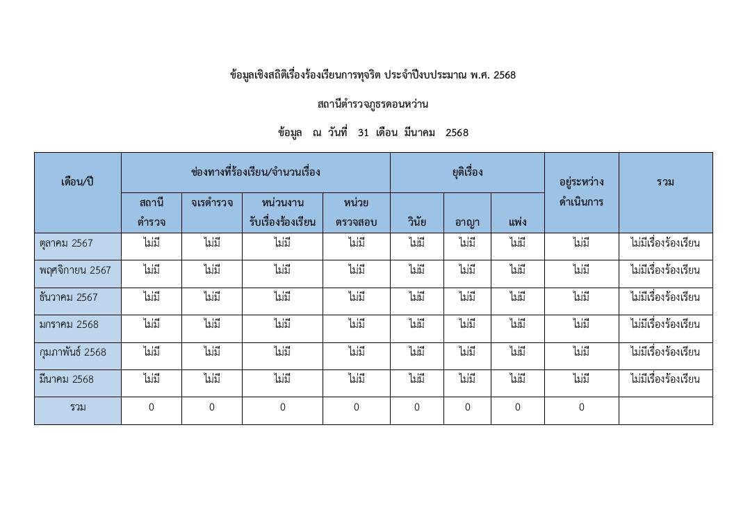 ข้อมูลสถิติเรื่องร้องเรียนการทุจริต รูปแบบ PDF